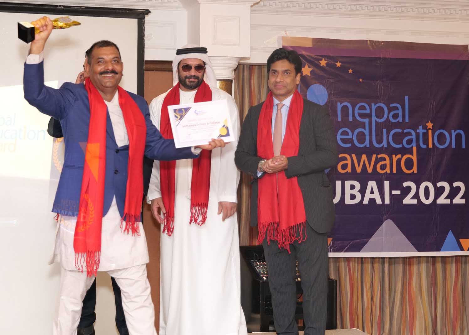 College Readers awarded 35 schools and colleges and 16 educational entrepreneurs the highly coveted Nepal Education Award (Dubai)-2022 on 13th October 2022 at Sheraton Hotel, Dubai. The program was graced by Dr. Aasif Ali Siddiqui, Chairman of Nepal Business Council, Dubai as the Chief Guest, Mohamad Husein, Joint Secretary of Government of Dubai as the Guest of Honor, and Prof. Dr. Dipak Bdr. Shakya, Vice Chancellor of Madesh Pradesh University, as the Special Guest.